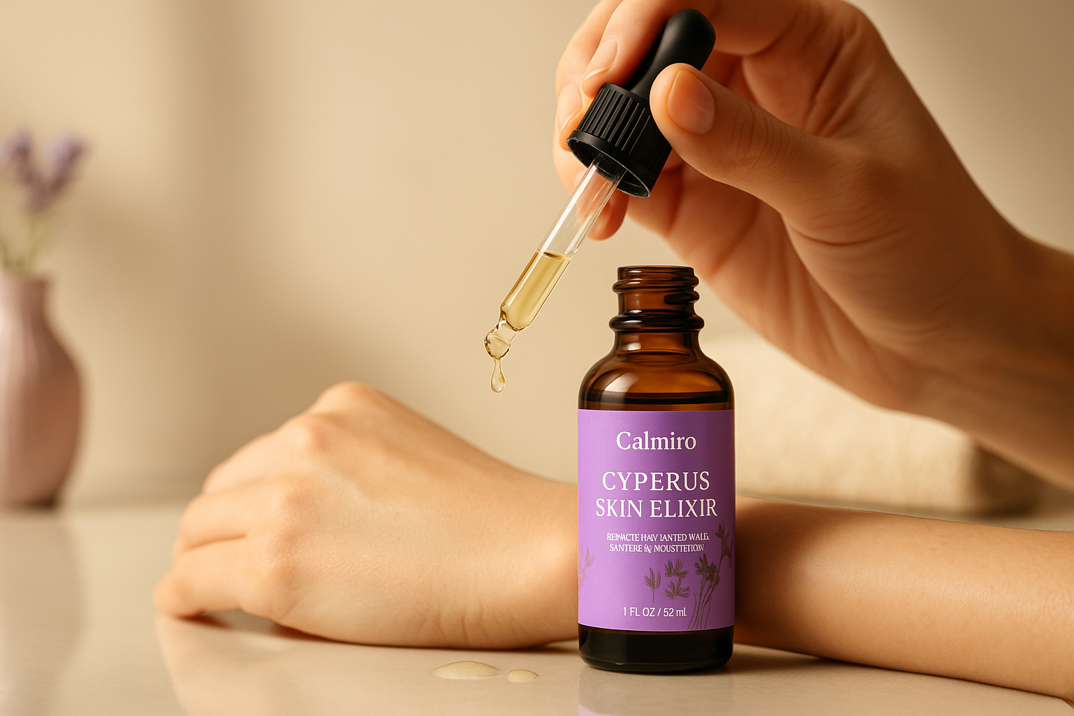 A Calmiro™ Cyperus Bőrelixír egy könnyű, növényi alapú olaj, amely segít lassítani a nemkívánatos szőrnövekedést, miközben nyugtatja és hidratálja a bőrödet.